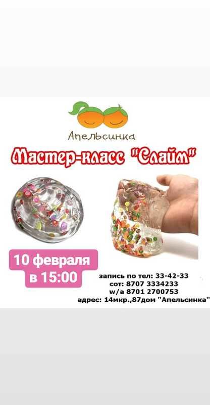 В детском развивающем центре "Апельсинка" пройдет мастер-класс по изготовлению слайма своими руками.