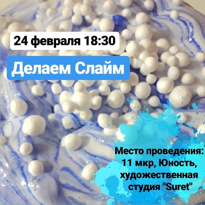 В это воскресение, 24 февраля, художественная студия "Сурет" приглашает на создание слайма в 18:30 часов.