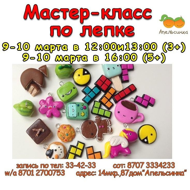 Детский развивающий центр "Апельсинка" приглашает детей на мастер-класс по лепке.