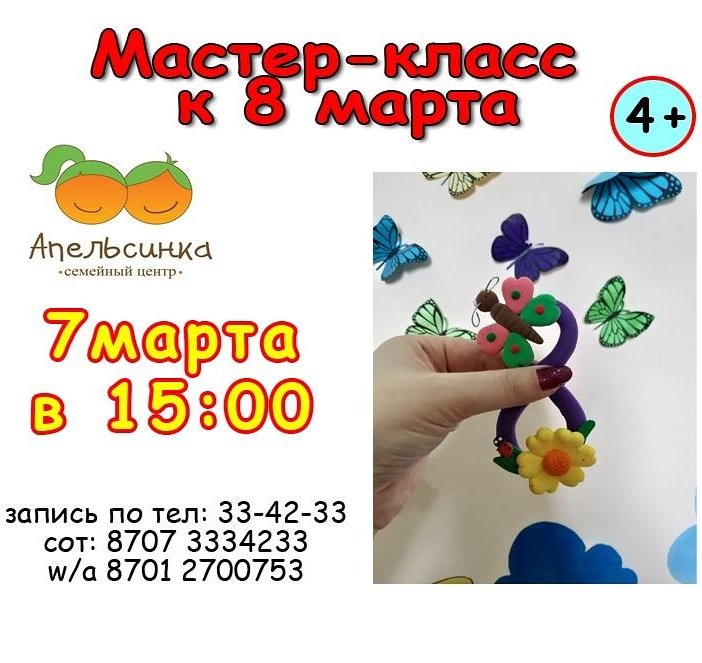 Детский развивающий центр "Апельсинка" приглашает детей на мастер-класс по лепке.