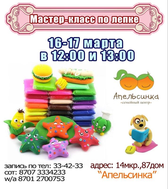 Детский развивающий центр "Апельсинка" приглашает ребят на мастер-класс по лепке.