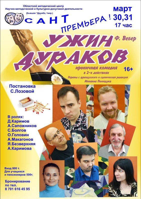 Начало спектаклей в 17:00 часов театре САНТ (бывшая "Дружба").