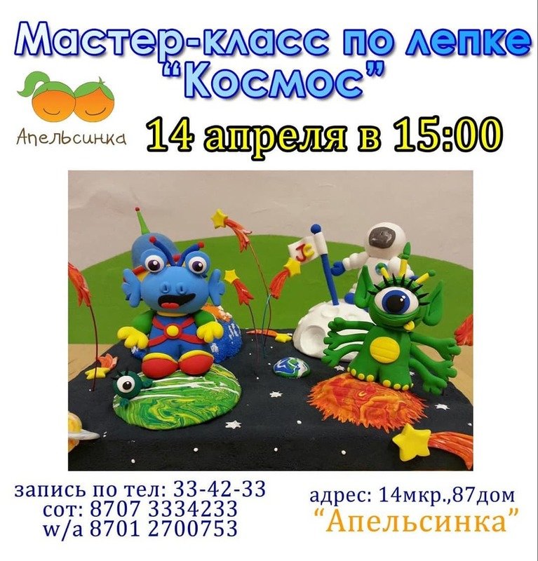Детский развивающий центр "Апельсинка" приглашает детей на мастер-класс по лепке "Космос".