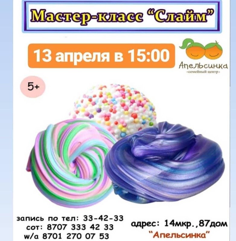 Детский развивающий центр "Апельсинка" приглашает детей на мастер-класс "Слайм".