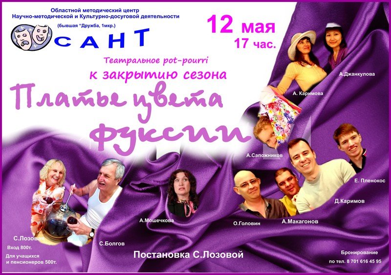 К закрытию театрального сезона актеры театра САНТ подготовили театральное попурри, составленное из пьес "Разговоры мужчин среднего возраста" Квартета "И", "Хвост женщины" А.Аверченко, "Соло для одинокого сердца" А.Васильева, "Мои золотые рыбки " Н.Птушкиной. Все эти пьесы о любви в самом разном ее понимании и проявлении, о бесконечном стремлении к ней.