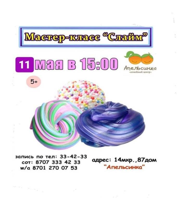 Детский развивающий центр "Апельсинка" приглашает детей на мастер-класс по изготовлению слайма.