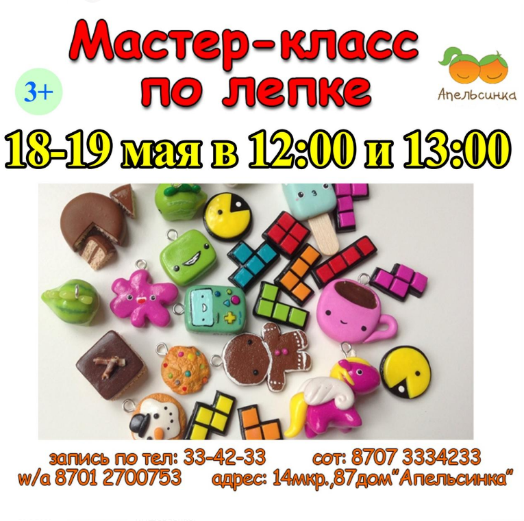 Детский развивающий центр "Апельсинка" приглашает детей на мастер-класс по лепке.