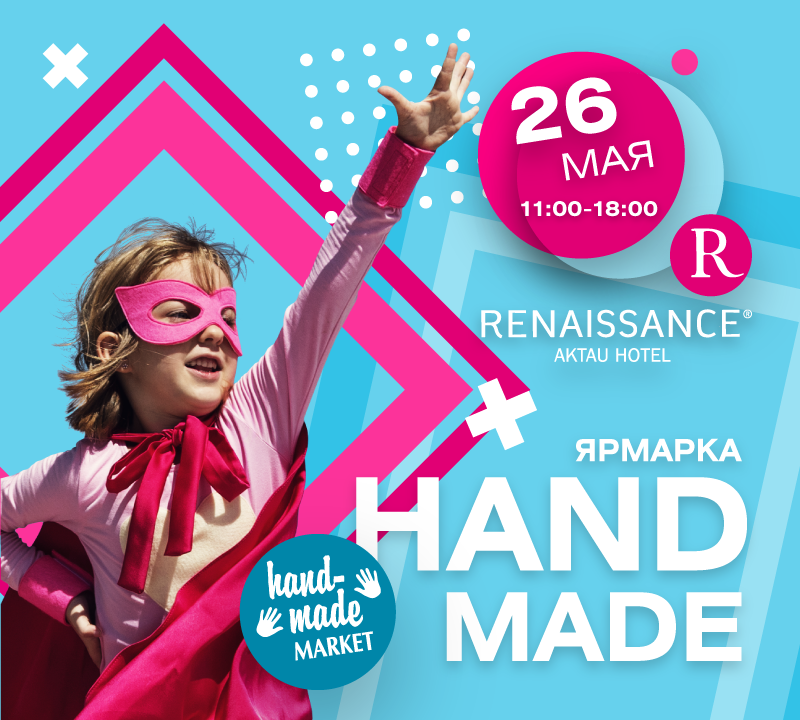 Дорогие жители и гости города Актау! Handmade Market откроет свои двери 26 мая в Отеле Ренессанс. Маркет посвящён Дню защиты детей! Все лучшее детям!