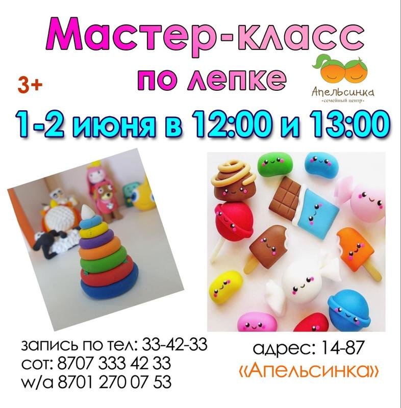 Детский развивающий центр "Апельсинка" приглашает на мастер-класс по лепке.