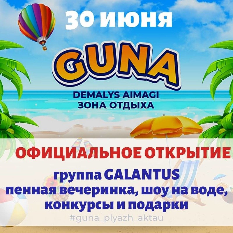 30 июня - день официального открытия пляжа ГУНА! В 17:00 начало праздничной программы!