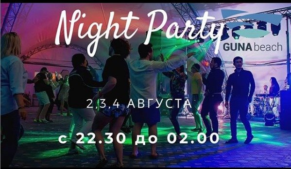 В эту пятницу, субботу и воскресенье (2,3,4 августа) с 22:30 до 02:00 на пляже Гуна пройдет ночная вечеринка.