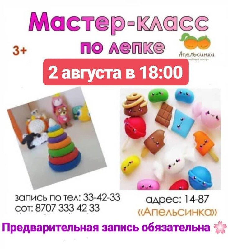 Детский развивающий центр "Апельсинка" приглашает детей на мастер-класс по лепке.