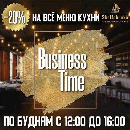 Деловой обед в ресторане “Sheffchenko” - это замечательная возможность ненадолго прервать свой насыщенный рабочий день и насладиться вкусной едой в уютной и спокойной атмосфере!