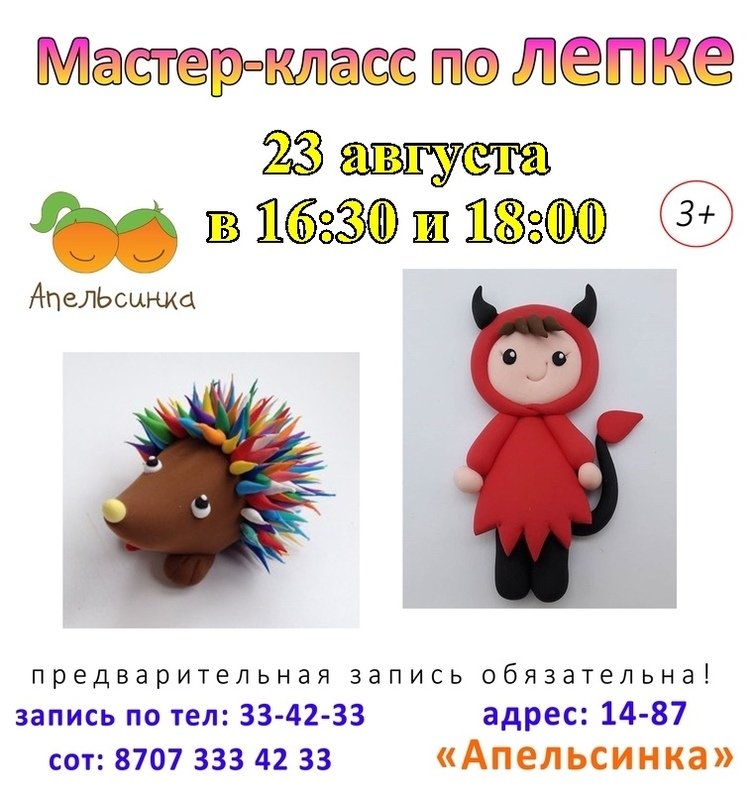 Детский развивающий центр "Апельсинка" приглашает детей на мастер-класс по лепке.
