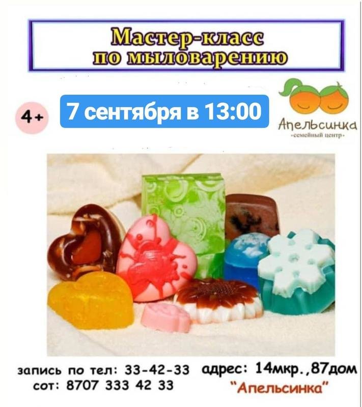 Детский развивающий центр "Апельсинка" приглашает ребят на мастер-класс по мыловарению.