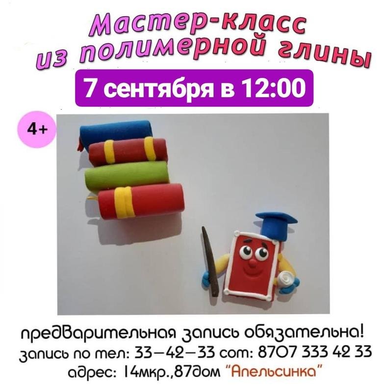 Детский развивающий центр "Апельсинка" приглашает ребят на мастер-класс по работе полимерной глиной.