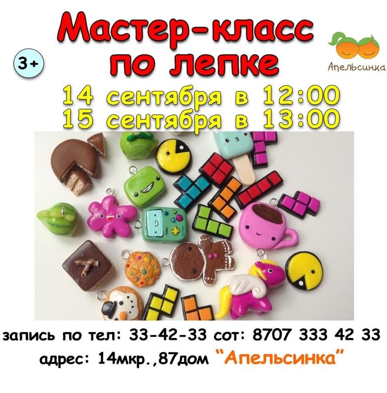 Детский развивающий центр "Апельсинка" приглашает ребят на десткий мастер-класс по лепке.