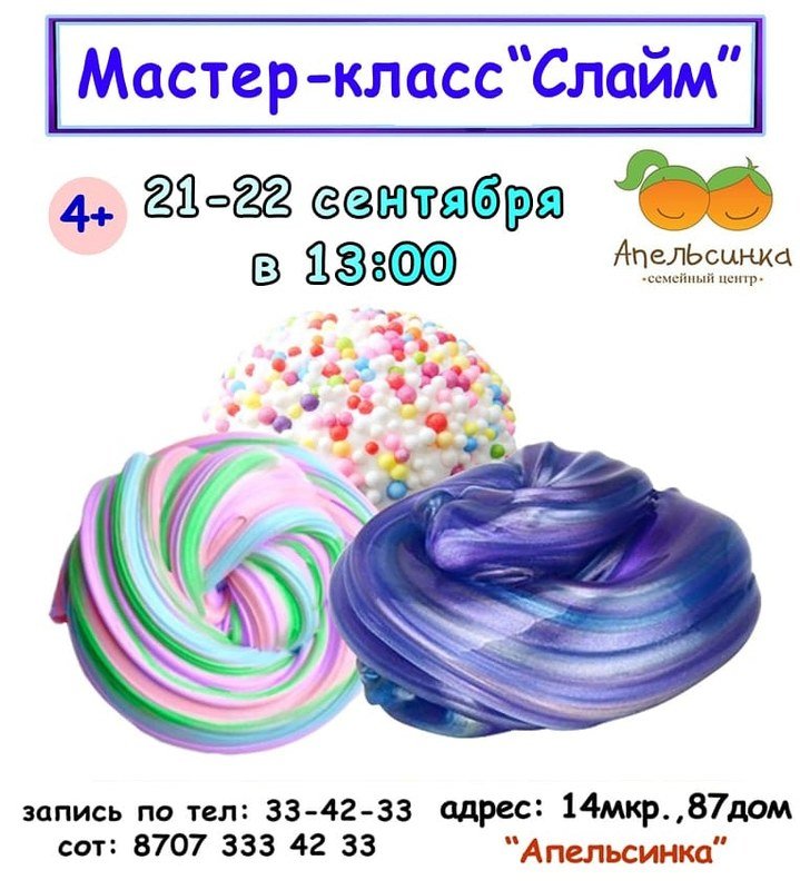Детский развивающий центр "Апельсинка" приглашает ребят на мастер-класс "Слайм".