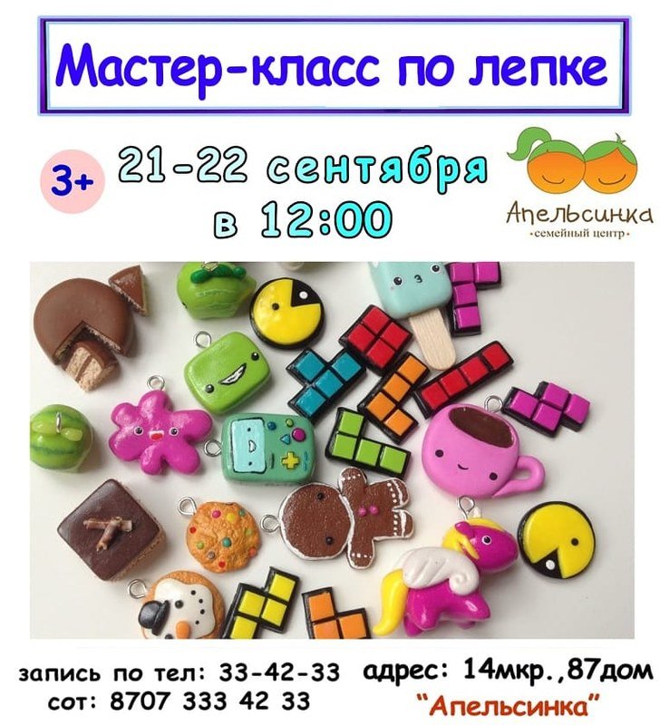 Детский развивающий центр "Апельсинка" приглашает ребят на мастер-класс по лепке.