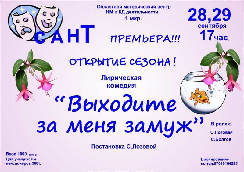 Театр САНТ откроет сезон новым спектаклем "Выходи за меня замуж".