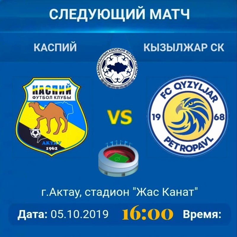 Игра состоится в эту субботу, 5 сентября. Об этом сообщили в пресс-службе футбольного клуба "Каспий".