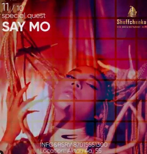 Гостей будет ждать необыкновенная, с яркой харизмой и уникальным голосом и текстами — Say Mo. При участии энергичных и известных танцовщиц города @indiratemir и @nartovaanna. Dj Ren — будет держать руку на пульте, а ведущий @is.aligass обещает, что скучно точно не будет!