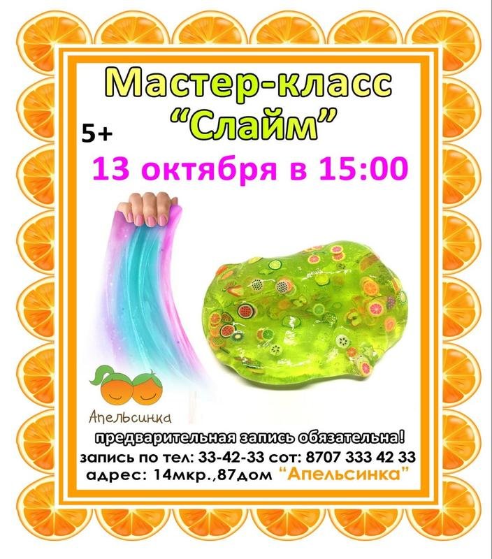 Детский развивающий центр "Апельсинка" приглашает ребят на мастер-класс "Слайм".