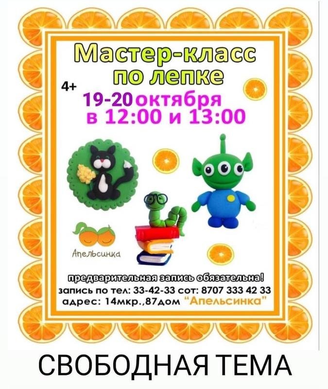 Детский развивающий центр "Апельсинка" приглашает ребят на мастер-класс по лепке.