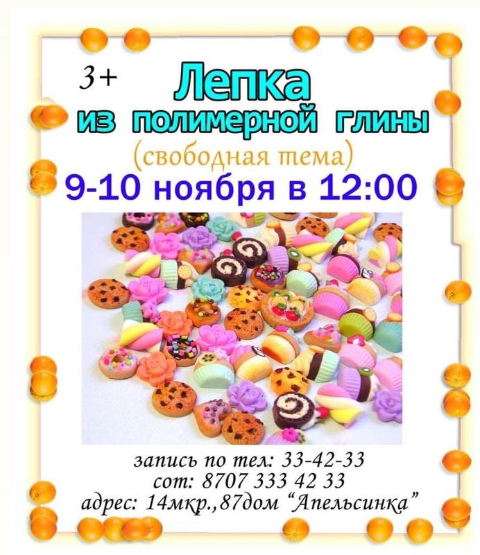 Детский развивающий центр "Апельсинка" приглашает детей на мастер-класс по работе с полимерной глиной.