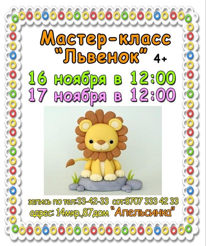 Детский развивающий центр "Апельсинка" приглашает ребят на мастер-класс по лепке "Львенок".