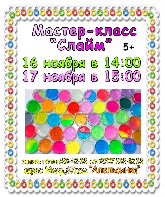 Детский развивающий центр "Апельсинка" приглашает ребят на мастер-класс по изготовлению слайма своими руками.