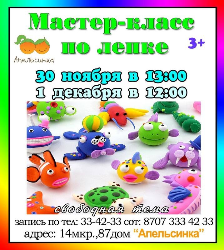 Детский развивающий центр "Апельсинка" приглашает ребят на мастер-класс по лепке на свободную тему.