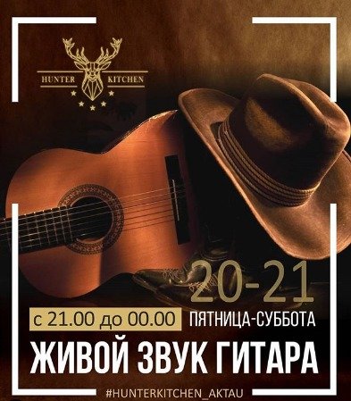 Живой звук гитары в рестобаре Hunter Kitchen каждую среду, пятницу и субботу!