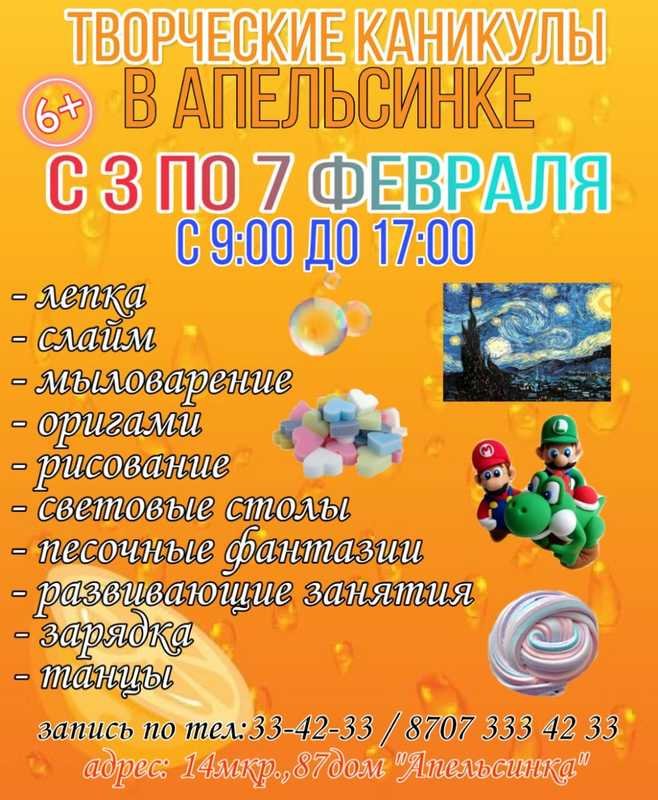 Детский развивающий центр "Апельсинка" приглашает детей вместе провести творческие каникулы.