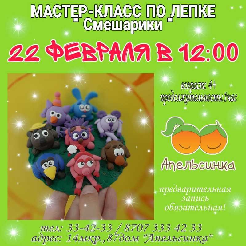 Десткий развивающий центр "Апельсинка" приглашает детей на мастер-класс по лепке смешариков.
