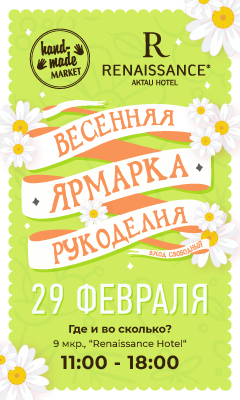 Жителей Актау приглашают на весеннюю ярмарку рукоделия, на которой будут представлены уникальные работы улчших мастеров города.