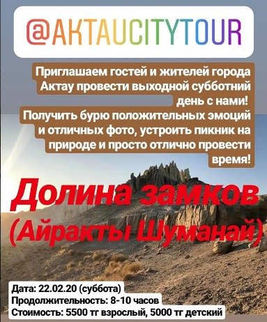 Стоимость: 5500 тенге взрослый, 5000 тенге детский.