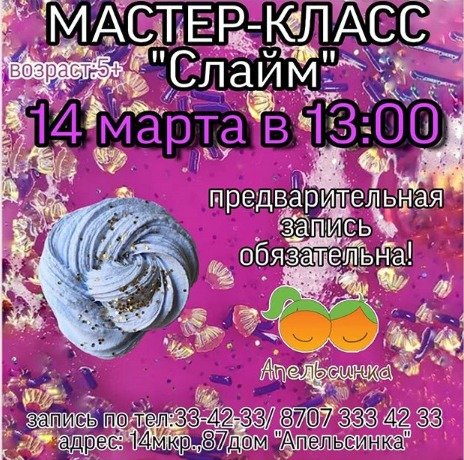 Детский развивающий центр "Апельсинка" приглашает ребят на мастер-класс по изготовлению слайма.