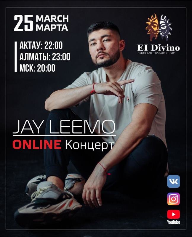 Посмотреть концерт Jay Leemo можно будет на странице @eldivinoaktau