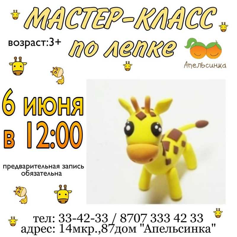 Детский центр Апельсинка приглашает на мастер-класс по лепке, который пройдет 6 июня в 12:00!