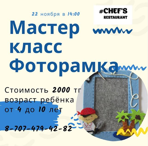 Стоимость 2000 тенге, возраст ребёнка от 4 до 10 лет! Будет очень интересно!