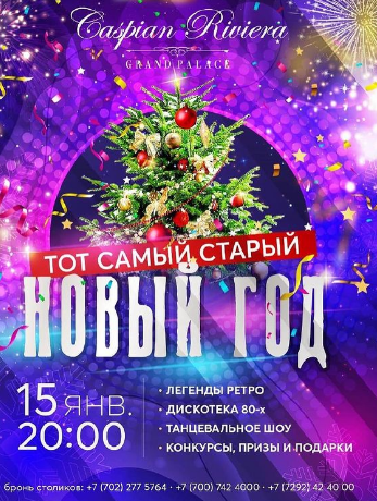Друзья! «Тот самый Старый Новый год!» не за горами. Уже в эту пятницу, 15 января 2021 года, в 20:00, в отеле Caspian Riviera Вы, в компании своих друзей и близких, сможете оказаться на мгновение в том светлом, советском времени.