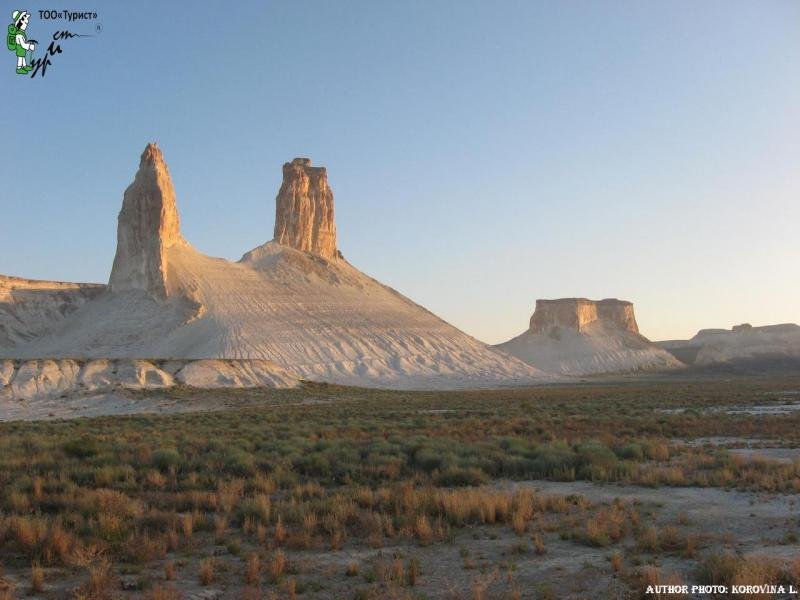 Бозжыра – это живописный обрыв плато Устюрт, оформленный меловыми горами и шпилями останцевого происхождения. Это ослепительно белые скальные останцы, среди которых самый известный это останец, у которого известняковые пики тянутся к небу, напоминая собой форму двух клыков. В окружении ослепительно белых фантастических ландшафтов можно в полной мере ощутить величие природы.