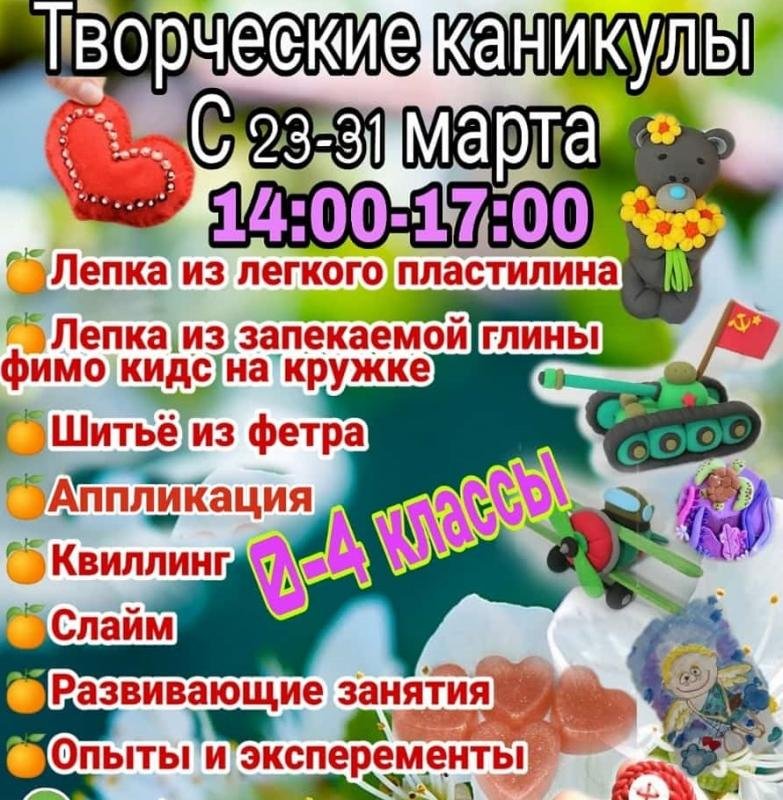 Творческие каникулы в Апельсинке! С 23 по 31 марта, с 14:00 до 17:00.