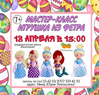 "Апельсинка" приглашает на мастер-класс "Игрушка из фетра".