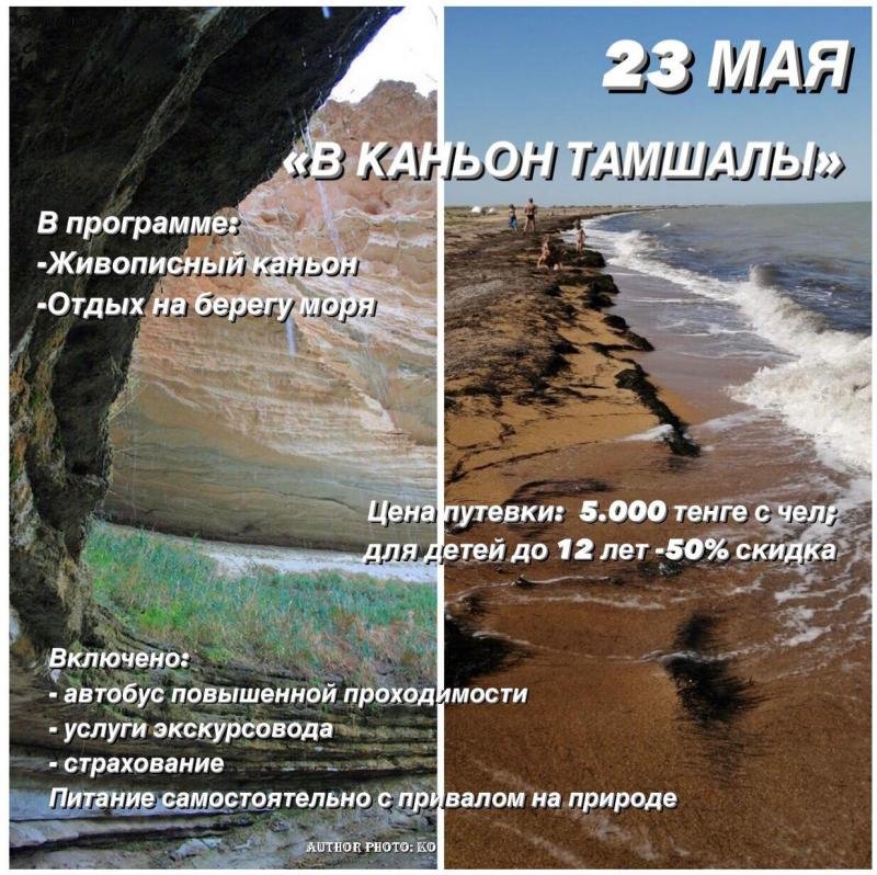 Экскурсия о природе Мангышлака с посещением живописного каньона Тамшалы, где можно увидеть, как плачет камень, и услышать красивую легенду о нем. Отдых на берегу моря.