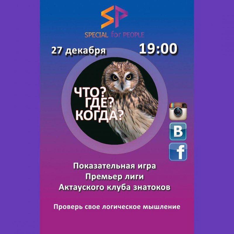 Не упустите возможность испытать свои знания в интеллектуальной игре Что? Где? Когда? И войти в премьер Лигу Актауского клуба знатоков!