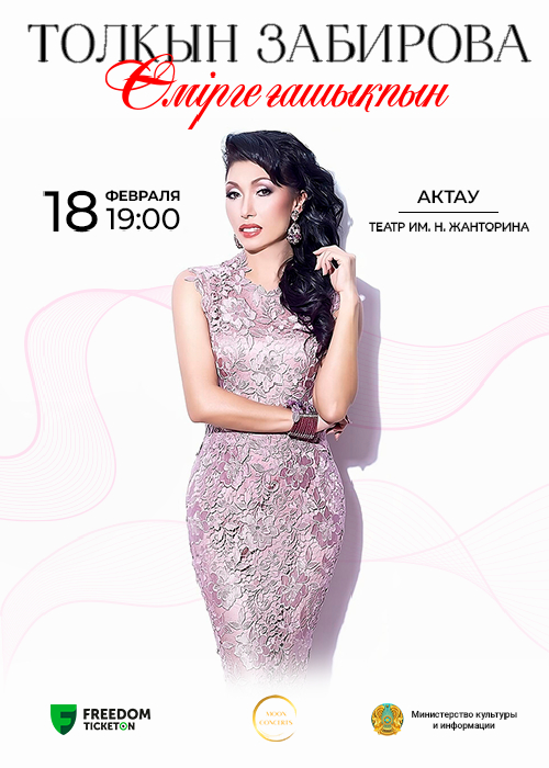 Толкын Забирова – эстрадная и оперная дива. Покорила сердца миллионов казахстанцев своими хитами: Қара маған қара, Өмірге ғашықпын, Сен үшін и мн. другими композициями.