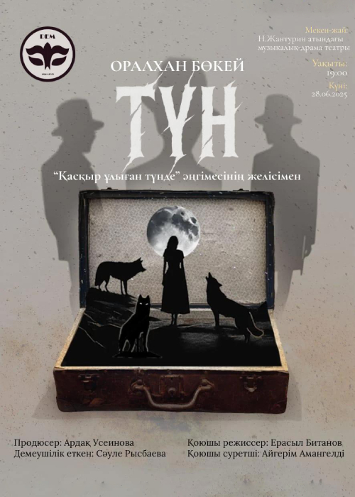 «DEM» жеке театры рухты қаламгер Оралхан Бөкейдің «Қасқыр ұлыған түнде» әңгімесінің желісімен дайындалған «Түн» спектаклін көрермен назарына ұсынады. Экспериментальдық жанрындағы бір сағаттық камералық форматтағы қойылым.