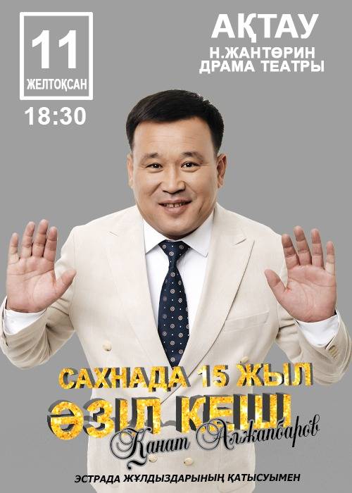 Қазақтың Қанатының әзіл сахнасында жүргеніне 15-жыл толуына орай еліміздің облыс орталықтарын аралап халыққа керемет көңіл күй сыйлайды!
